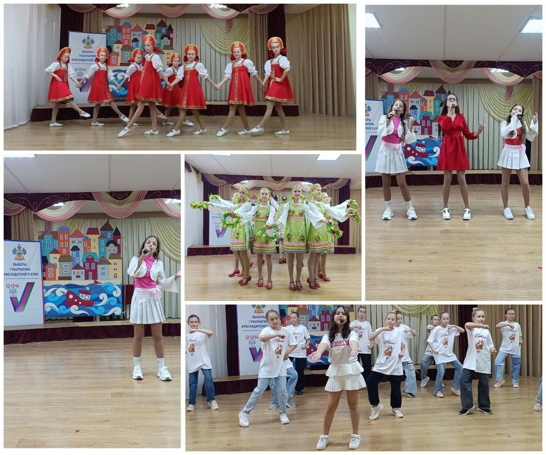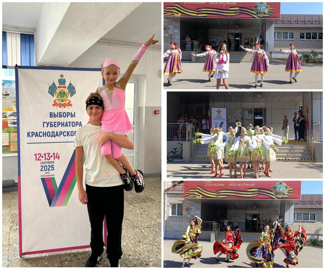 Кроме того, день Краснодарского края совпал с Единым днем голосования, и наши артисты выступили на избирательных участках в Центре «Родник», СОШ №46 и 111 - Солисты под руководством педагога А. А. Соломахиной, танцевальная группа «Дартс» под руководством Ю. В. Богославской и коллектив «Талисман» по руководством Ю. Л. Туркиной. Диана Гудзь из цирковой студии «Совершенство» , руководитель Мясникова П.В., поразила акробатическим номером.