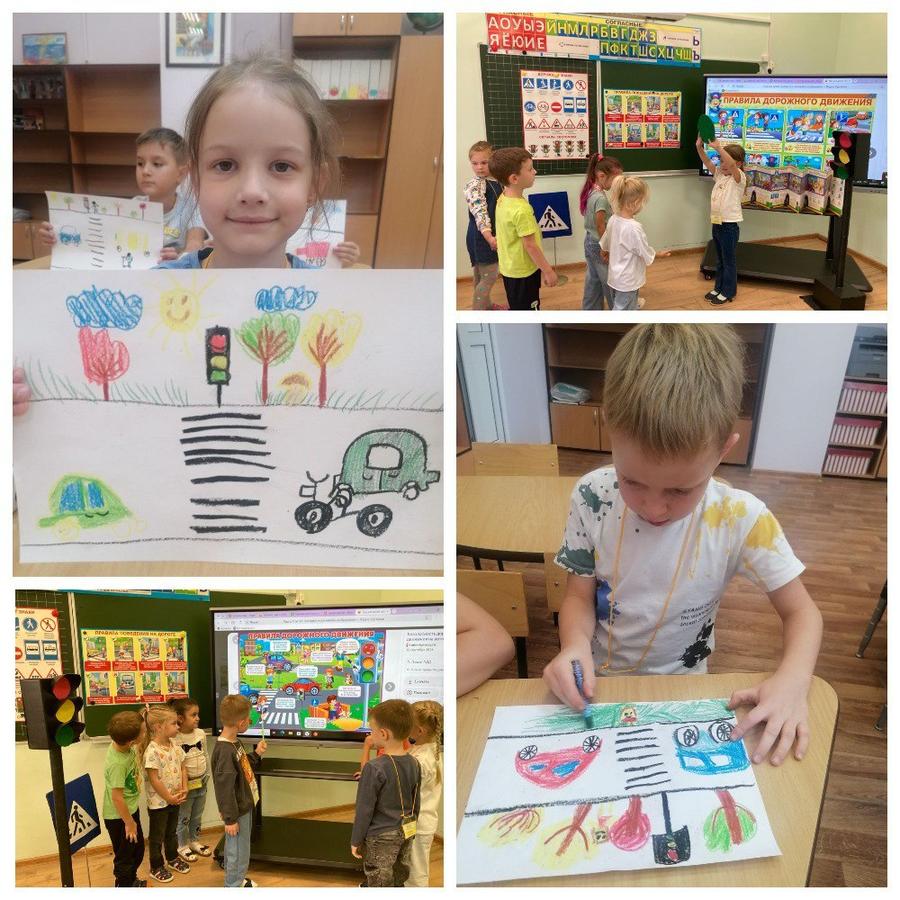 В группах «Умники и умницы» с педагогом Вихлянцевой И. В. ребята посмотрели презентацию «Я — пешеход», участвовали в дидактической игре «Мой маршрут в Центр "Родник"», разбирали дорожные ситуации, работали в тетрадях и у доски.